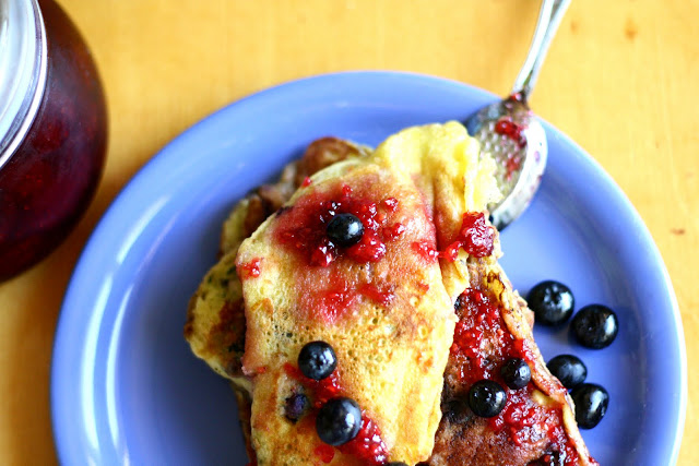I topped them with raspberry and strawberry jam, and a few fresh blueberries.